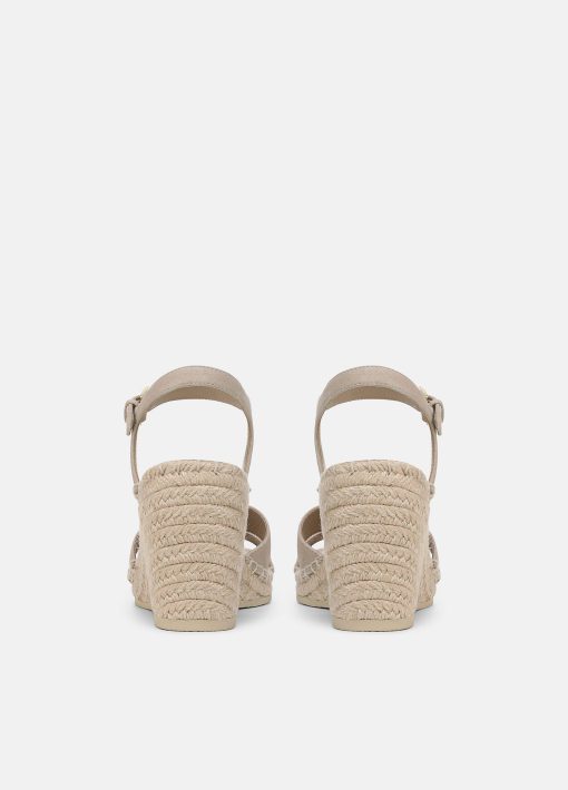 An update on the classic espadrille, our supple suede Gwen sandal is elevated with a wedge heel and squared buckle closure at the ankle.