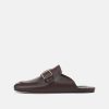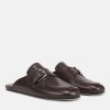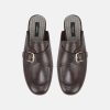 Our Minetta Loafer Mule is composed of soft leather and finished with a self-strap across the vamp that secures with a squared metal buckle.