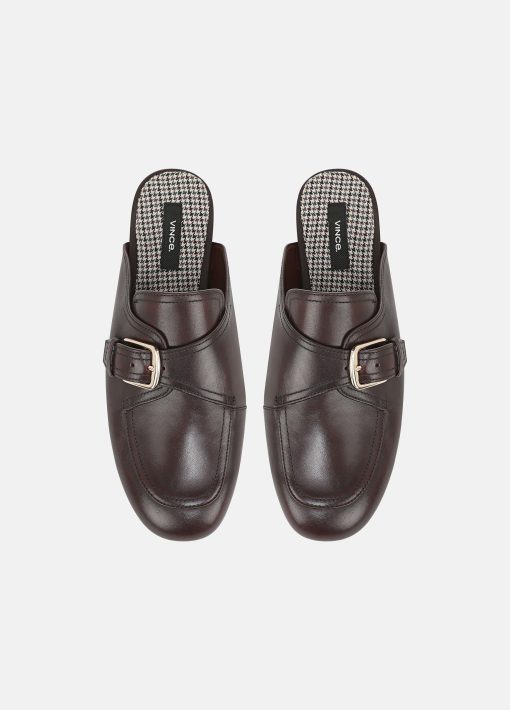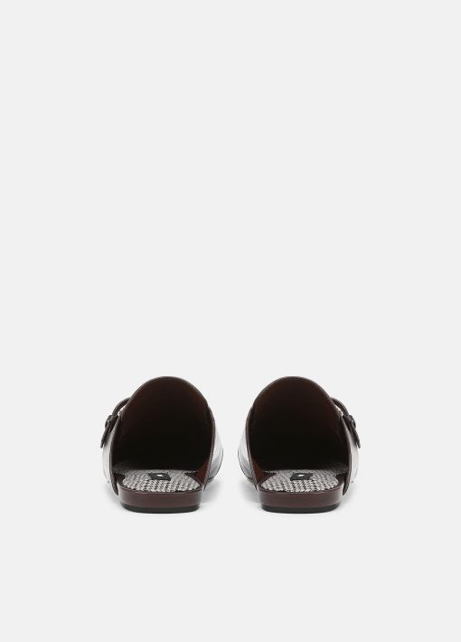 Our Minetta Loafer Mule is composed of soft leather and finished with a self-strap across the vamp that secures with a squared metal buckle.
