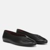 Soft leather panels are held together down the center with a small metal bar accent for a refined, deconstructed spin on the timeless ballet flat. At the bottom, a rubber outsole provides discreet traction.