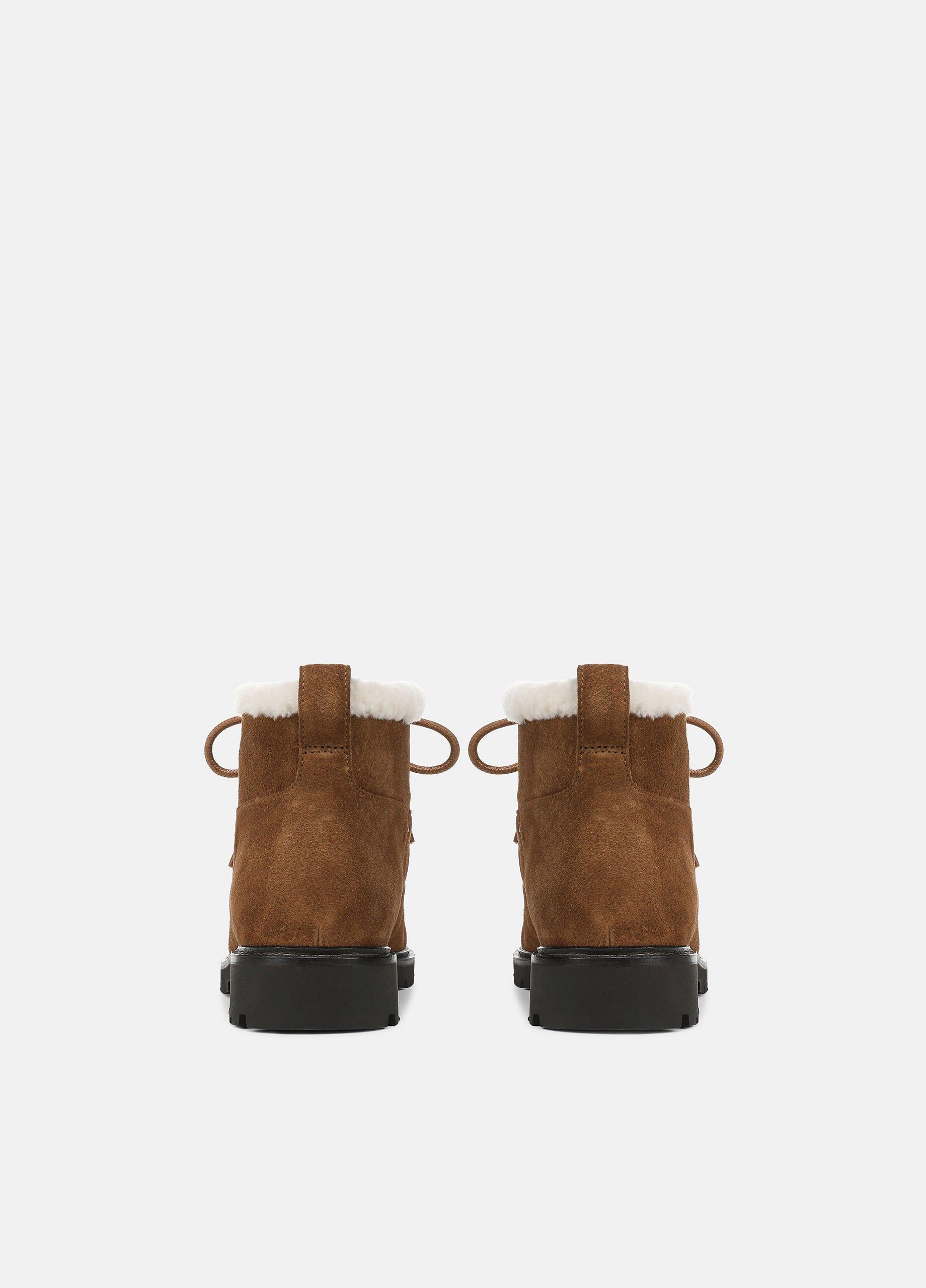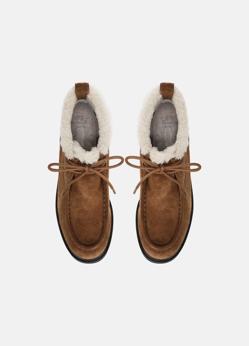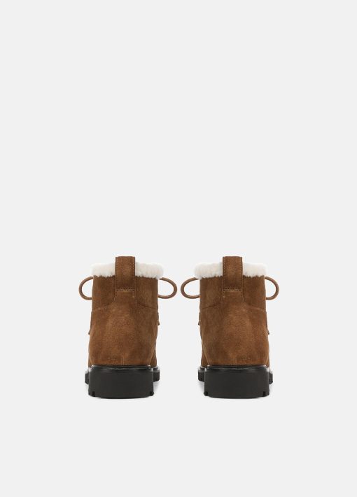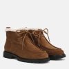 A refined interpretation of a utilitarian classic, our lug-sole boot is crafted from buttery suede with a plush shearling lining. Take heed: we added a water-repellant finish for doubled protection against unexpected weather.