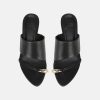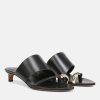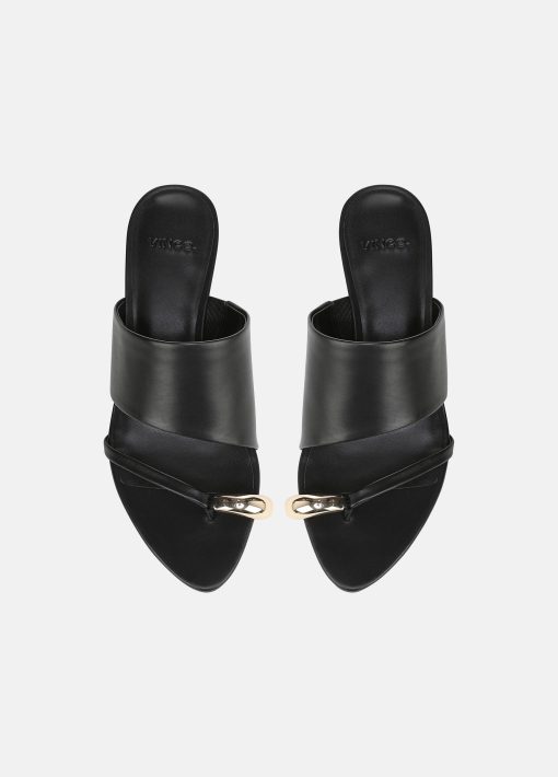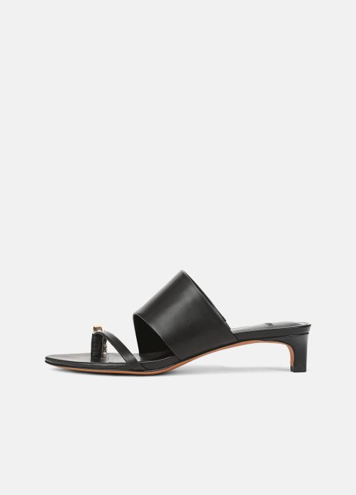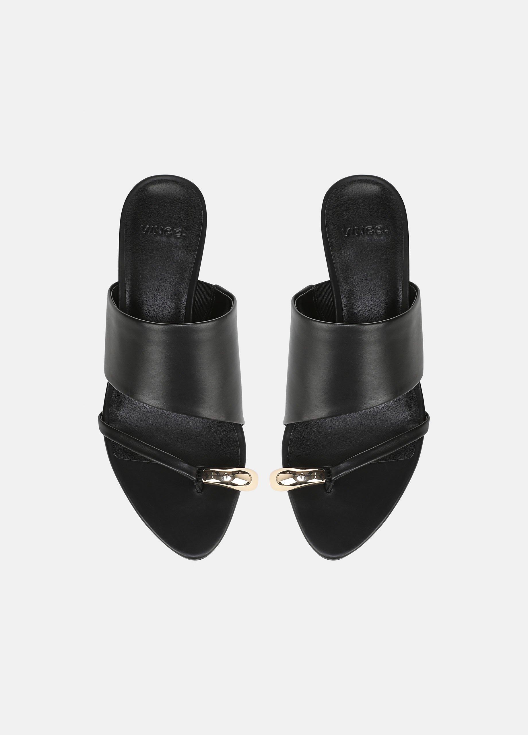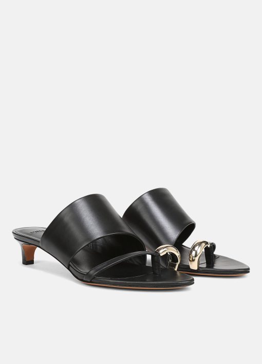 Set on a low, sculptural kitten heel, our supple leather sandal plays with proportion through its juxtaposing wide and slender straps. We’ve finished it with a jewelry-like, gold-tone metal ring at the toe.
