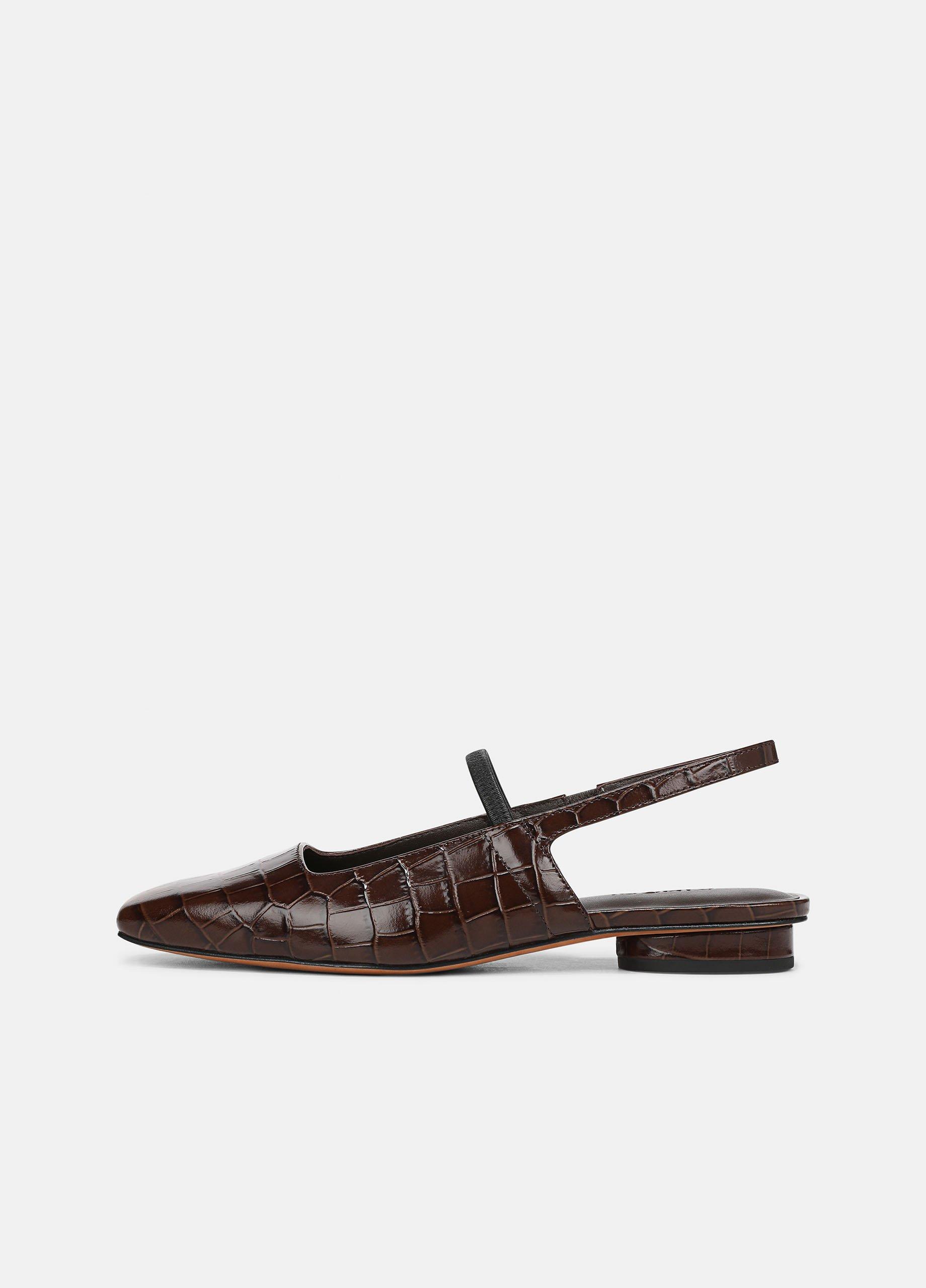Our best-selling Venice flat is reimagined for the season in textural croc-embossed leather. Set on a low, walkable heel, it’s finished with elasticized details to hug the foot just right.