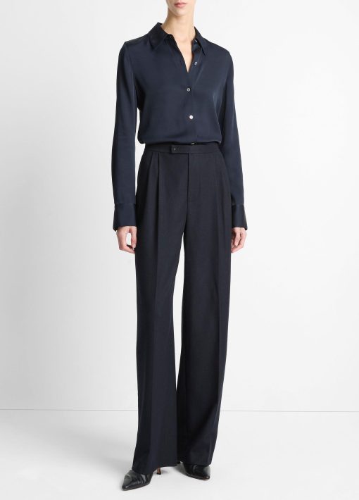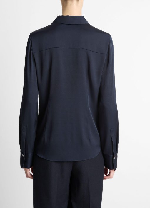Vince Women’s Silk-blend Slim Button-front Blouse | Coastal Blue