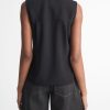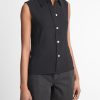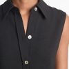 Effortlessly polished, this sleeveless crepe button-up tapers in at the waist for a slim fit.