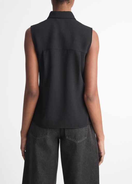 Effortlessly polished, this sleeveless crepe button-up tapers in at the waist for a slim fit.