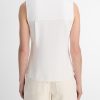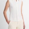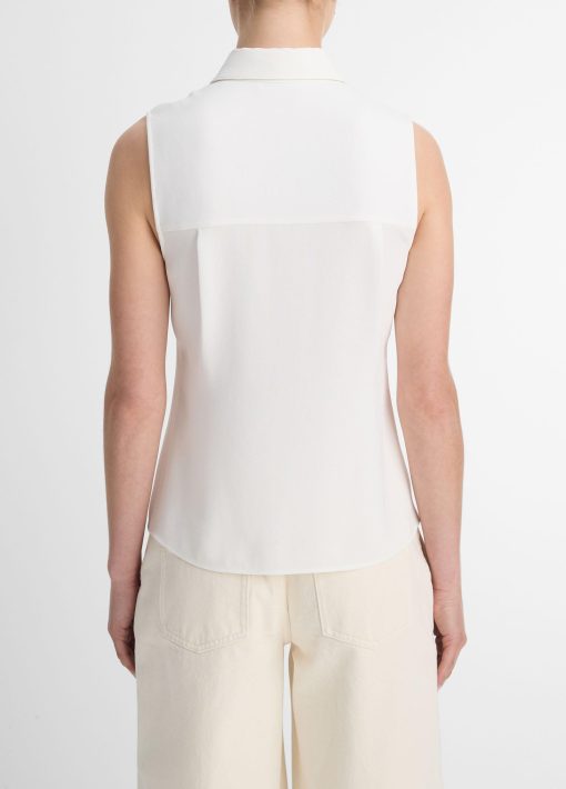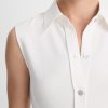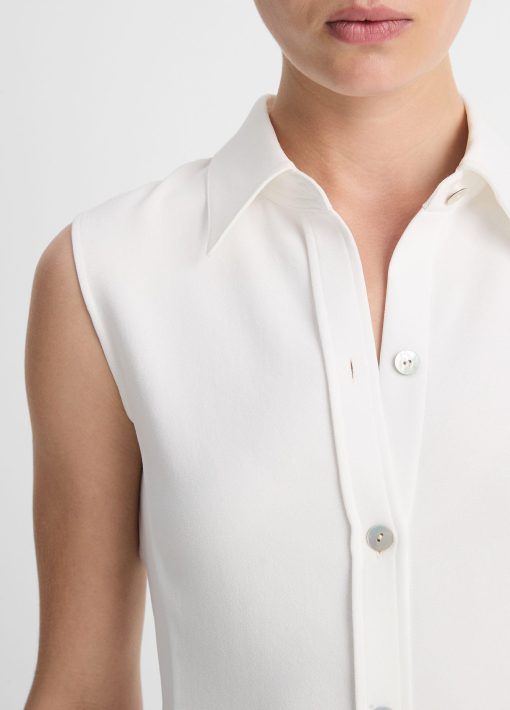 Effortlessly polished, this sleeveless crepe button-up tapers in at the waist for a slim fit.