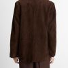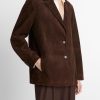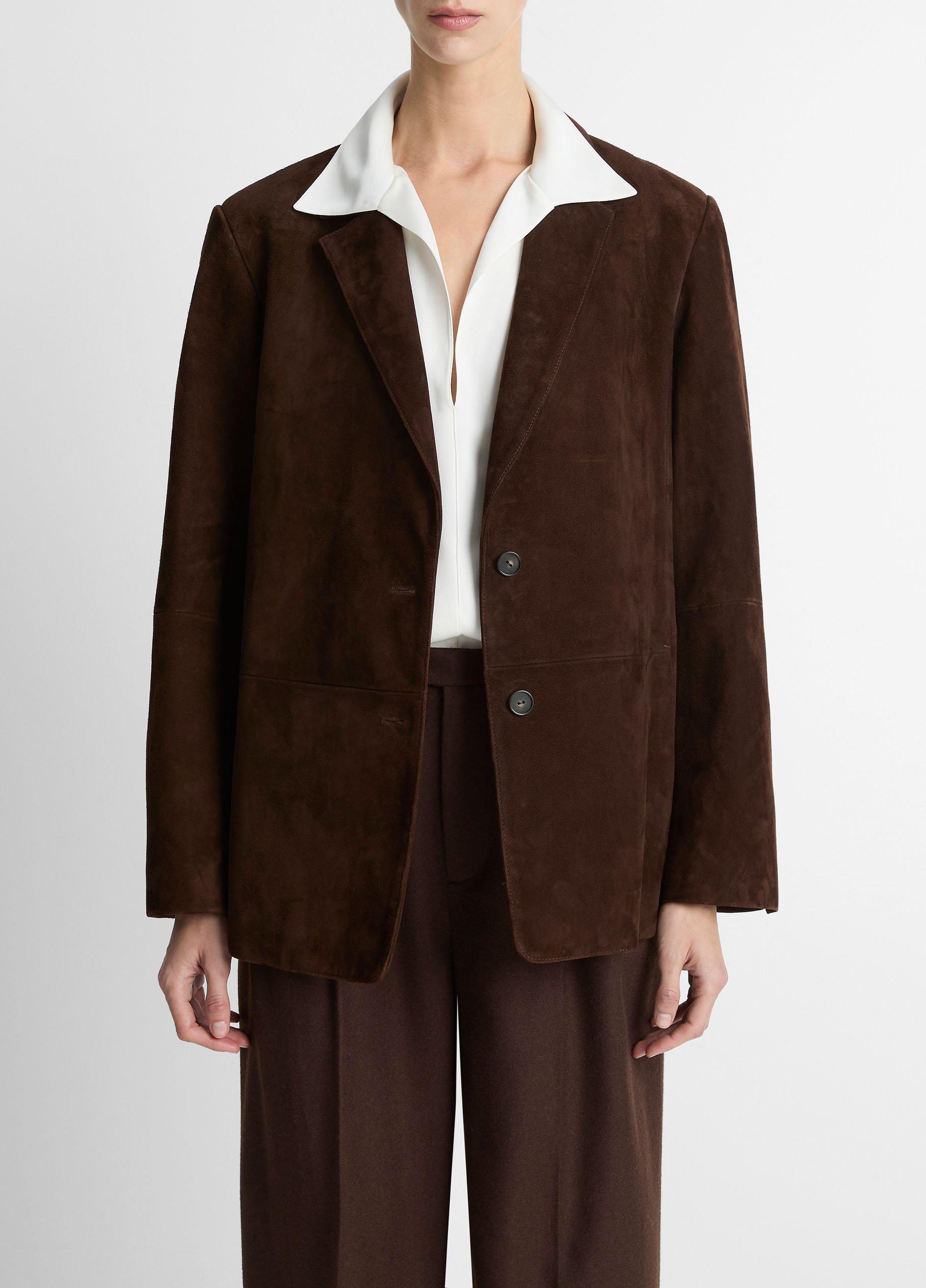 Tailored with a boxy, oversized fit and padded shoulders, our best-selling, buttery suede blazer returns for the season in a rich chocolate brown hue.