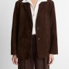 Tailored with a boxy, oversized fit and padded shoulders, our best-selling, buttery suede blazer returns for the season in a rich chocolate brown hue.