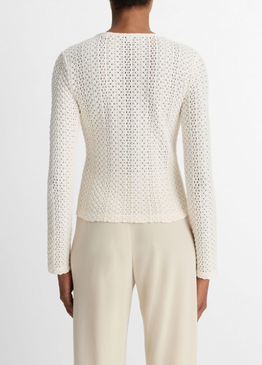 Our easy cardigan is knit from sumptuous Japanese cotton in a crochet-inspired construction — it’s light, airy and boasts the softness of a sweater.