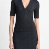 Our elbow-sleeve polo top is knit from sumptuous Japanese cotton in a crochet-inspired construction — it’s light, airy and boasts the softness of a sweater. Pair it back to our Textural Cotton Midi Skirt for a matching set.