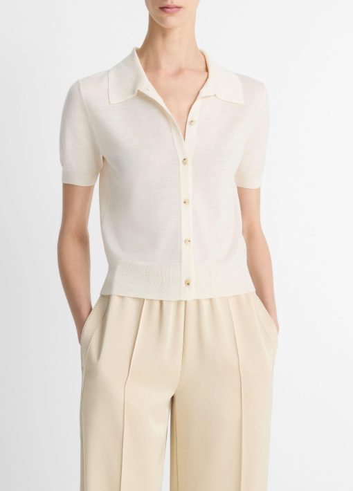 Vince Women’s Wool-blend Collared Button-front Sweater | Off White
