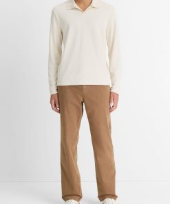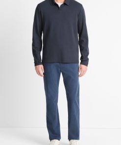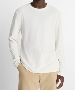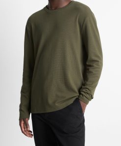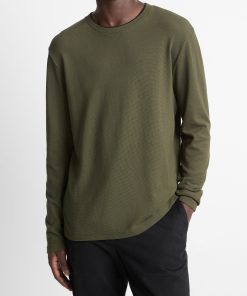 Vince Men’s Micro-waffle Pima Cotton Double-collar Long-sleeve T-shirt | Driver Green & Black